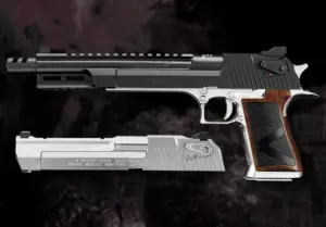 デザートイーグルは、アメリカのM.R.I.(マグナム・リサーチ・インク)社が設計を発案し、イスラエルのIMI(イスラエル・ミリタリー・インダストリーズ)社と共同で開発された大型自動拳銃です。