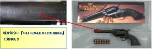 これはリボルバータイプのエアガンでも同じで、シリンダー前面が塞がれていない場合は規制の対象です。さらに、金属製モデルガンと判定されるため、銃本体の色は「白」または「黄色(金色)」に塗り直す必要があります。
